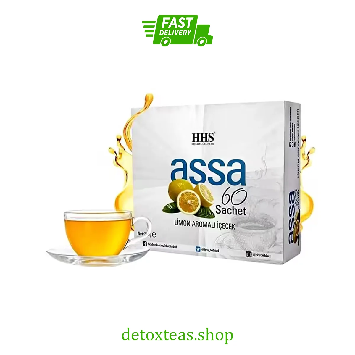 HHS Assa Detox Tea is een kruidenpoedermix die is samengesteld om de stofwisseling en de spijsvertering te ondersteunen. Het is ontworpen voor dagelijks gebruik en wordt geleverd in zakjes die gemakkelijk oplossen in heet water, voor een soepele en gerichte detoxroutine.